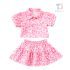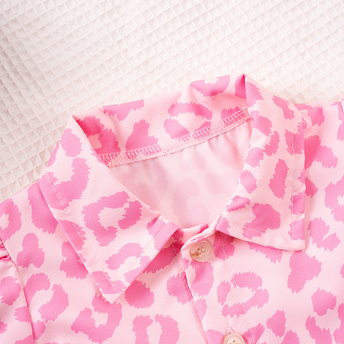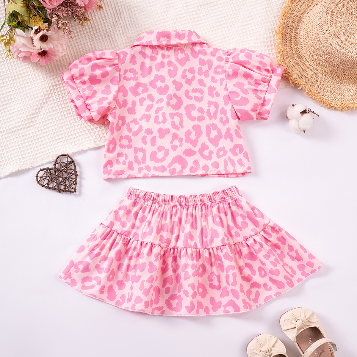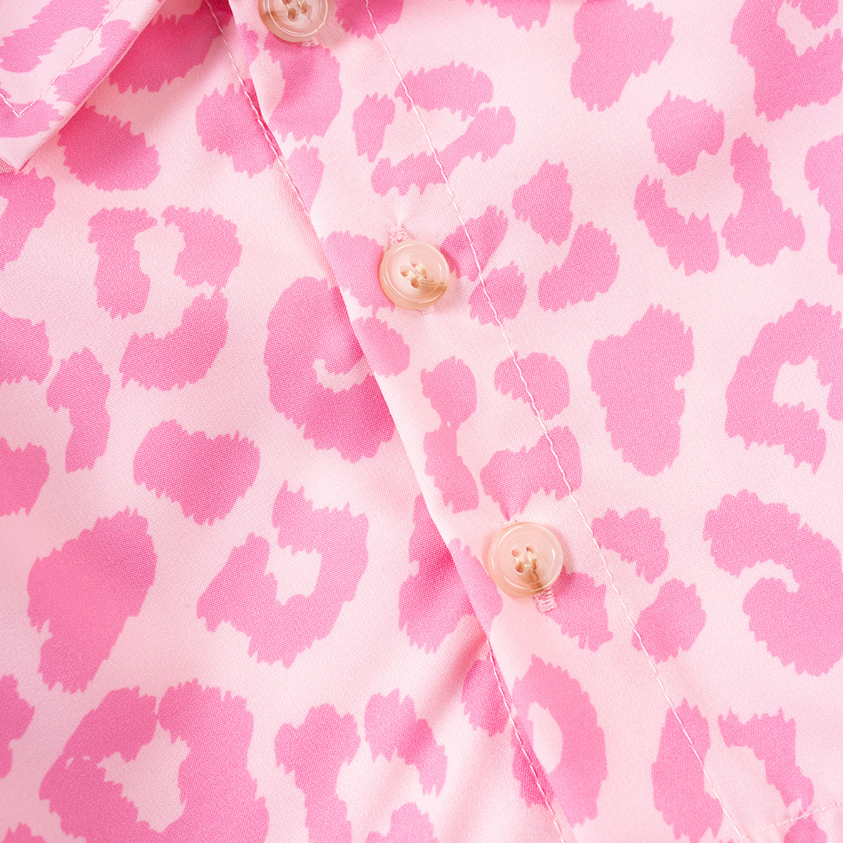-Cămașă crop din material de calitate superioară, cu guler clasic – realizată într-un imprimeu animalier roz, dulce și vesel – lungimea scurtă, mânecile bufante cu pliuri delicate și nasturii din lemn în față adaugă un farmec modern „Miss Safari”, păstrând totodată lejeritatea și confortul în zilele călduroase