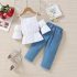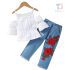 Set de 2 piese cu cămașă cu bretele, dantelă și pantaloni din denim cu flori aplicate Flower Pop