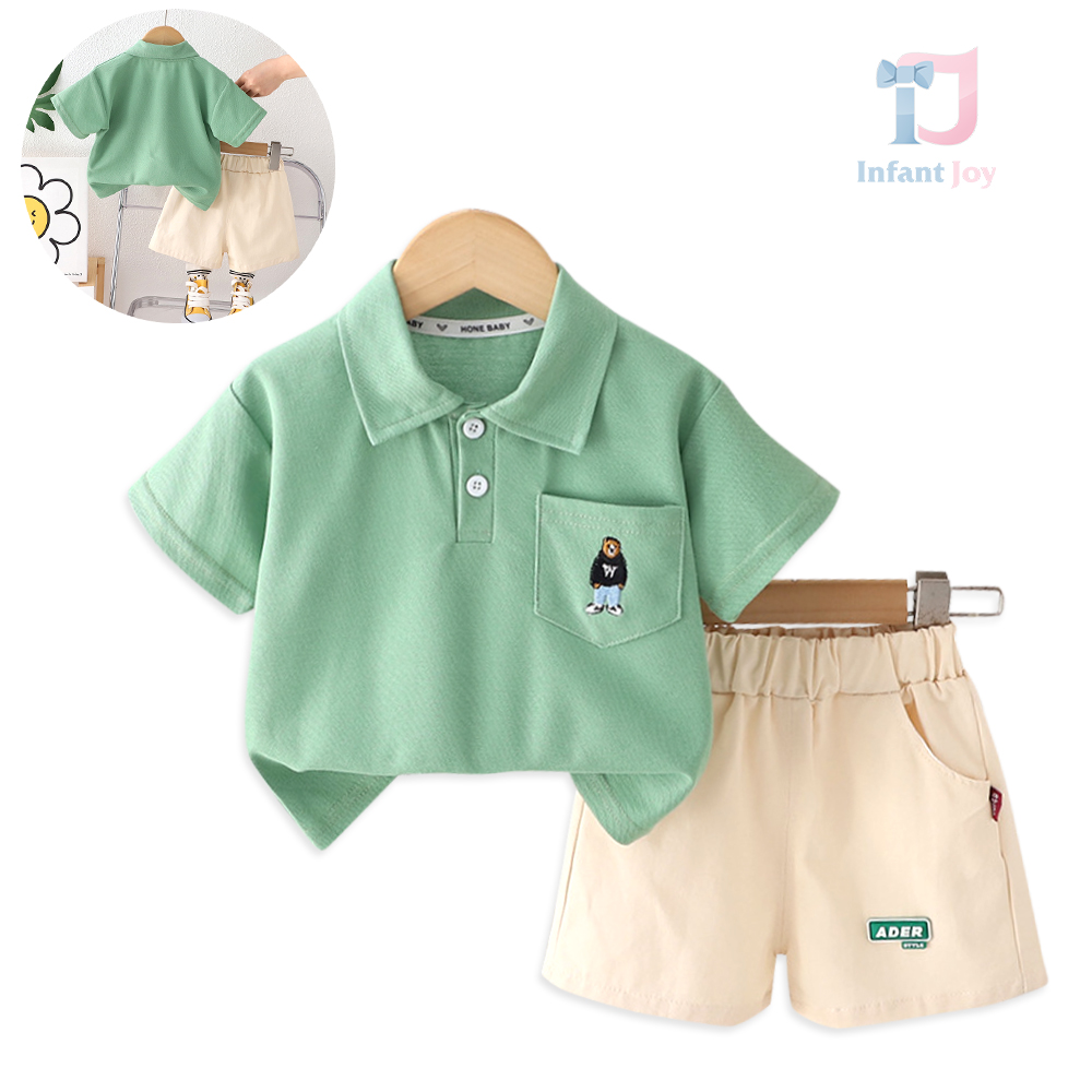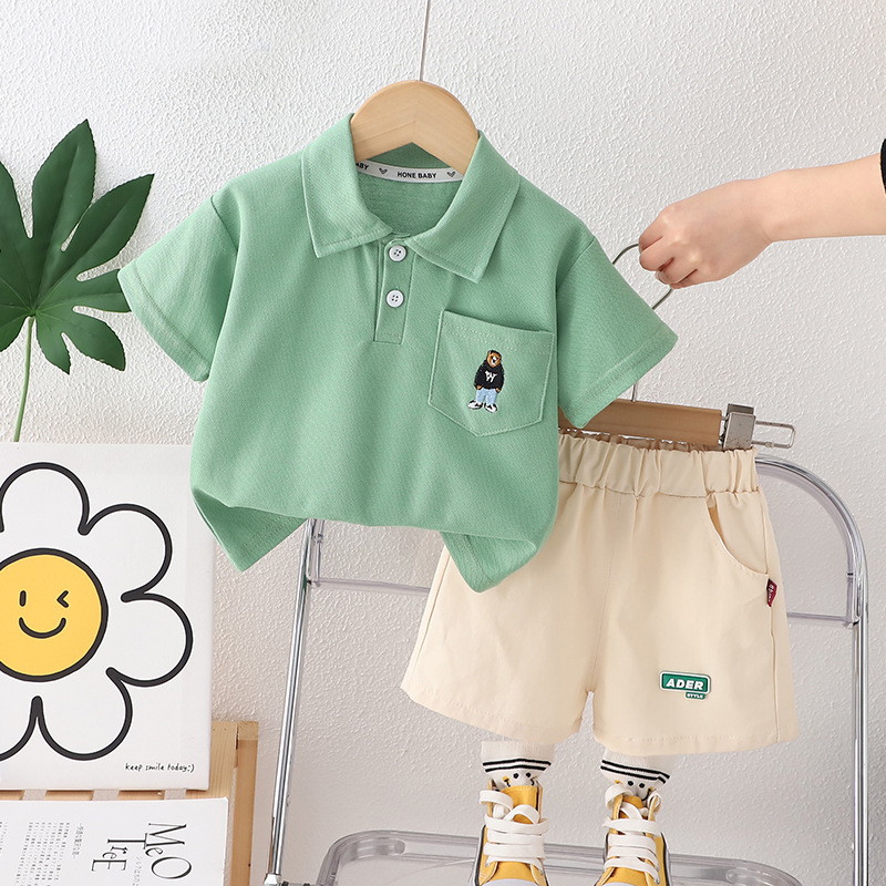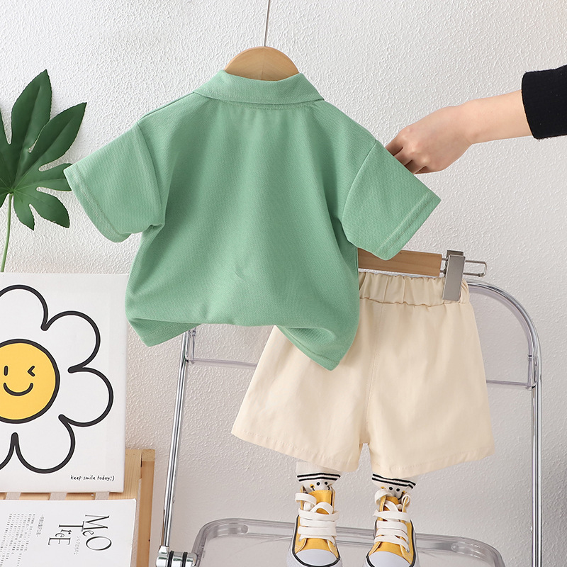 Set de 2 piese cu cămașă cu guler clasic, broderie și pantaloni scurți în nuanță cu emblemă Fresh Polo League