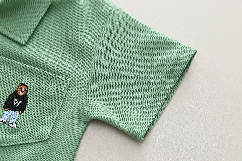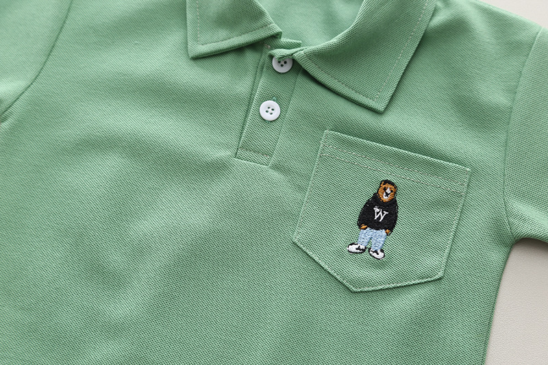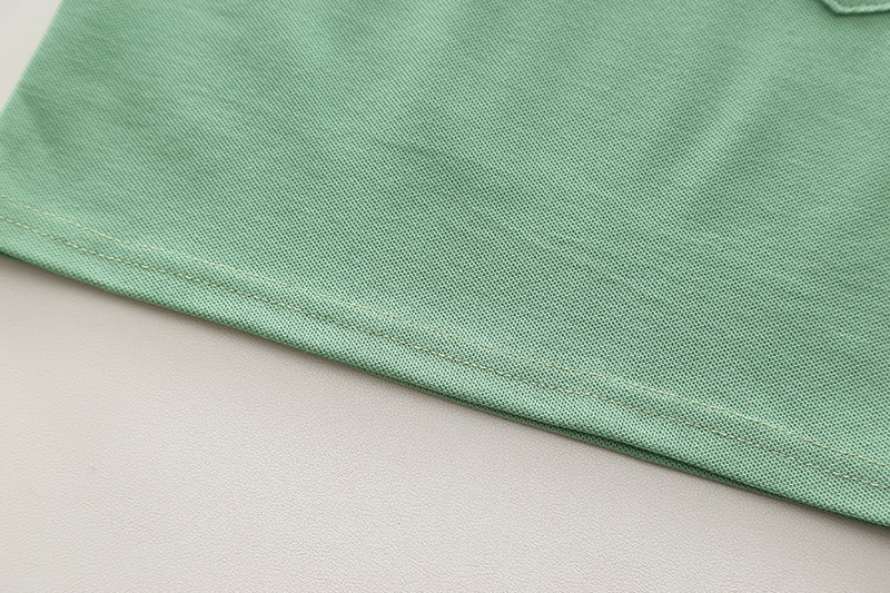 – Tricou cu mânecă scurtă, într-o nuanță proaspătă de mentă, confecționat din material tip piqué moale și respirabil. Gulerul clasic și închiderea cu 2 nasturi oferă un look sport-elegant, iar buzunarul cu broderie fină cu leu adaugă un accent simpatic.