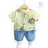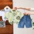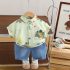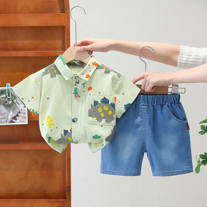 Set de 2 piese cu cămașă din in și pantaloni scurți din denim Dino Dynasty Green