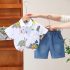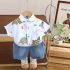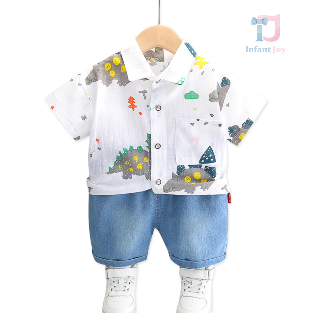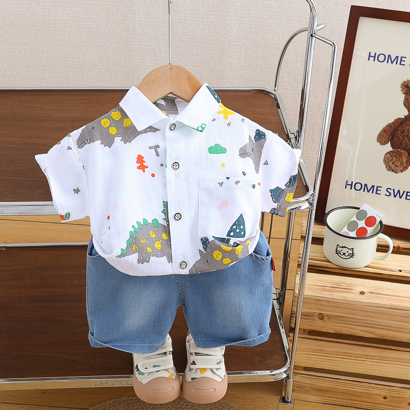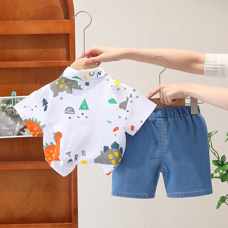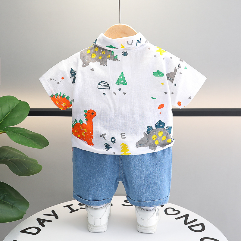 Set de 2 piese cu cămașă din in și pantaloni scurți din denim Dino Dynasty White
