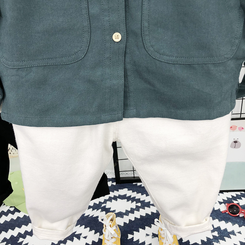 -Pantaloni lungi până la gleznă, confecționați din denim alb de calitate superioară, cu talie elastică pentru îmbrăcare ușoară. Design simplu, care completează perfect partea superioară a setului.