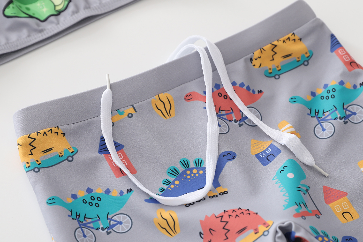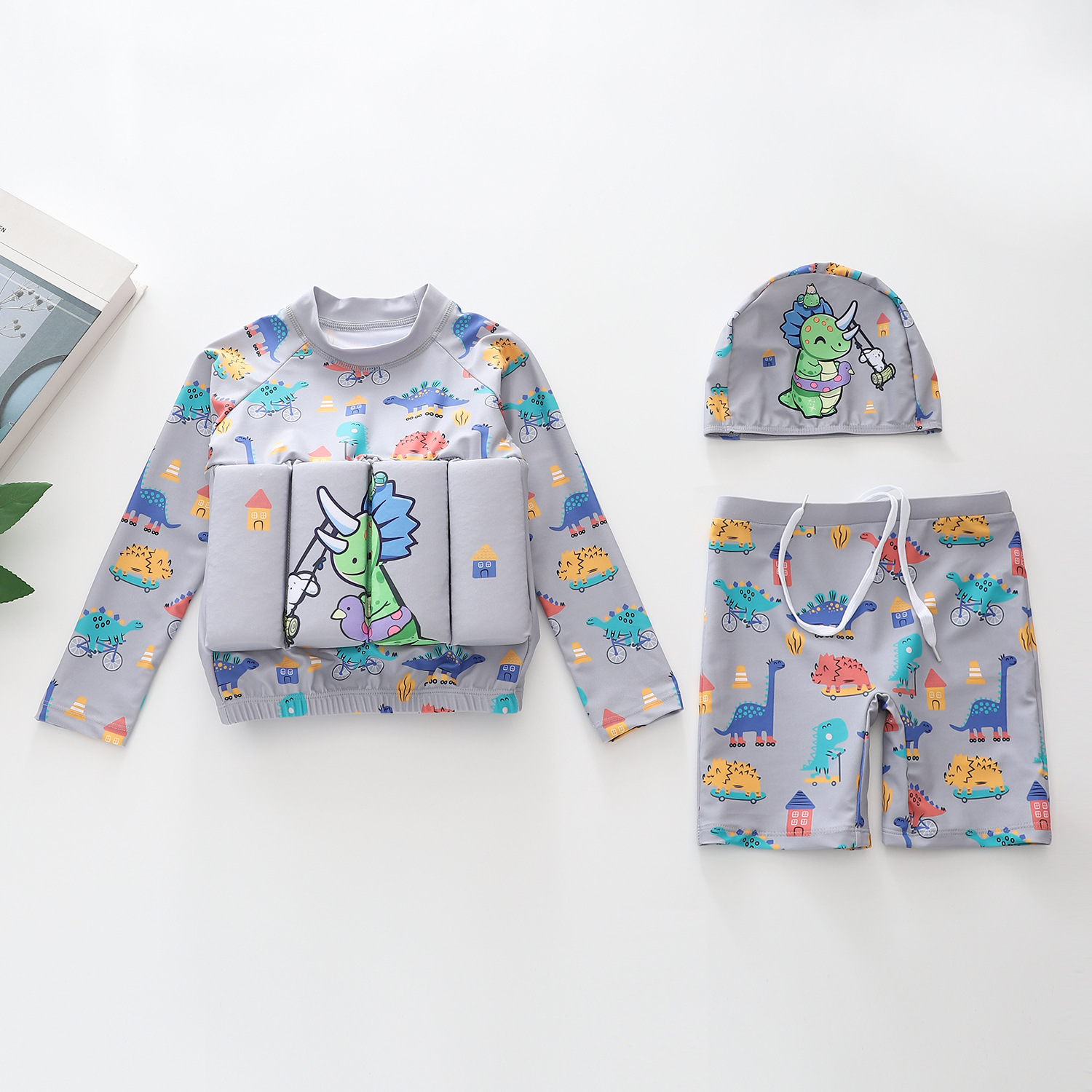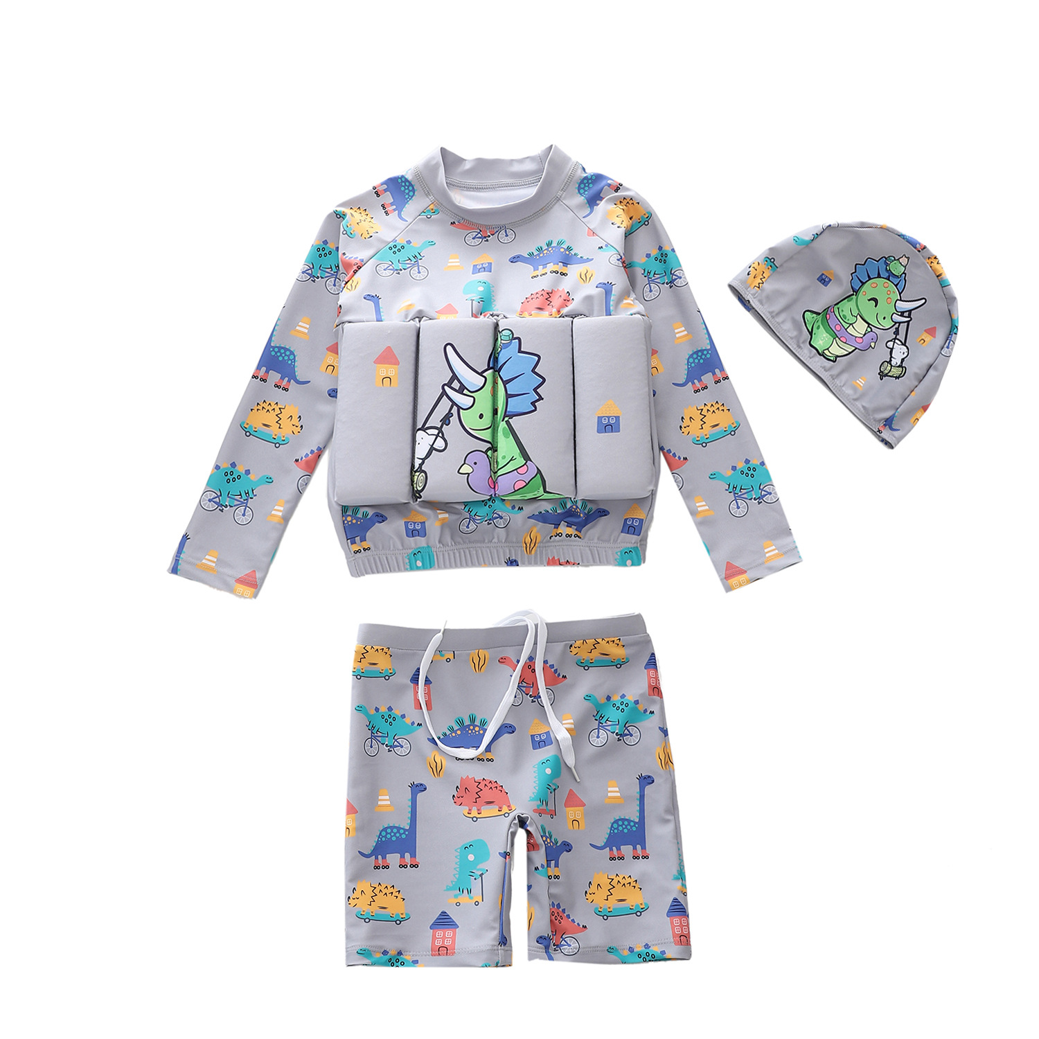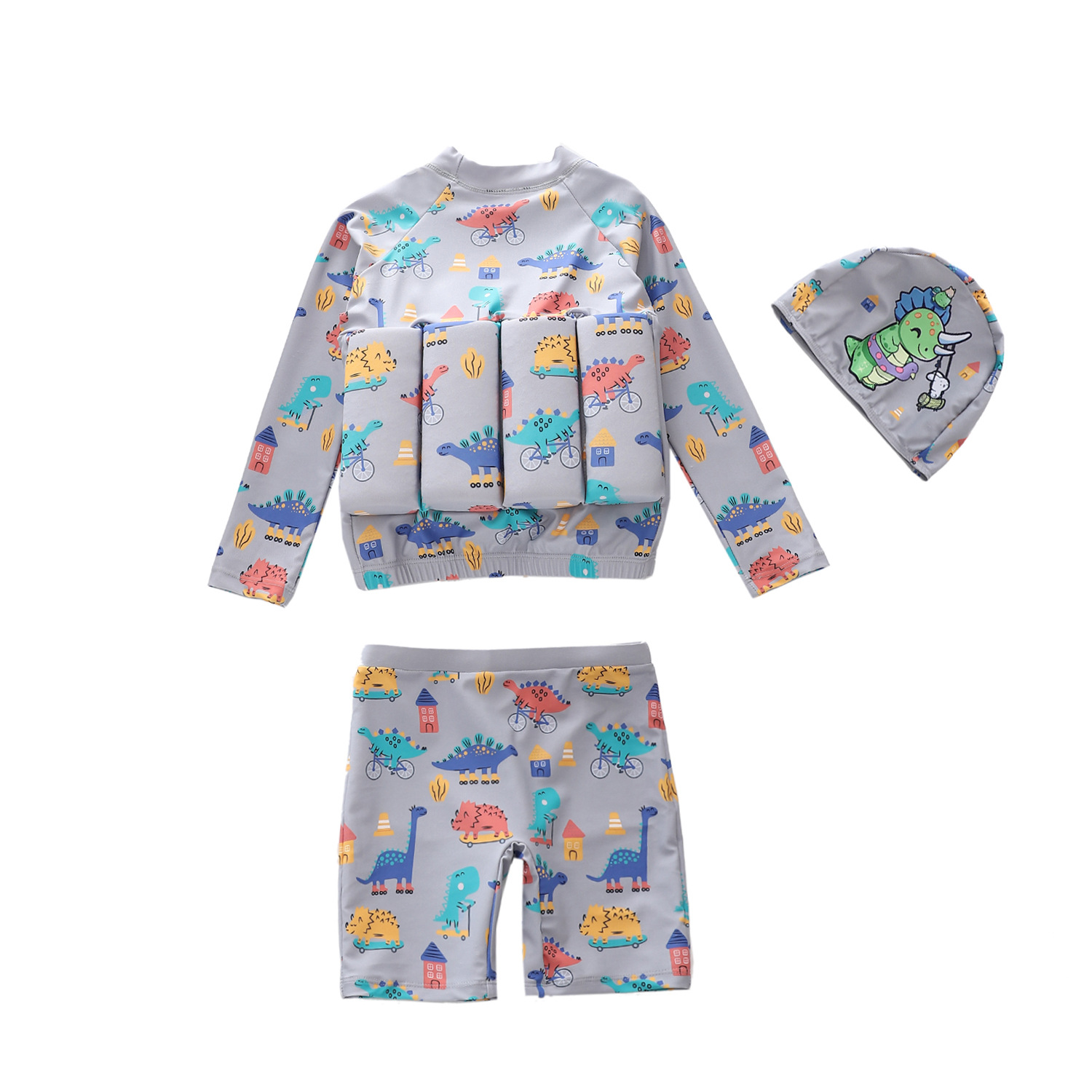 🐟Costum de baie „Aqua Rex” – costum plutitor cu panouri din fibră, pantaloni scurți și șapcă de înot cu dinozauri (3 piese)