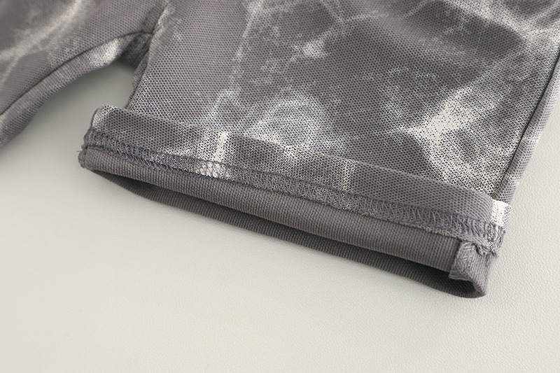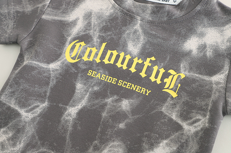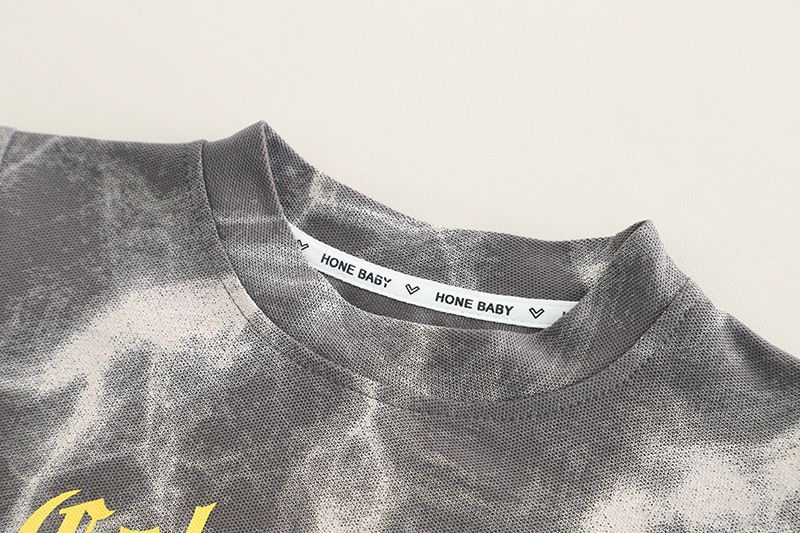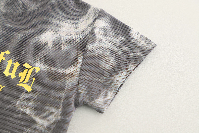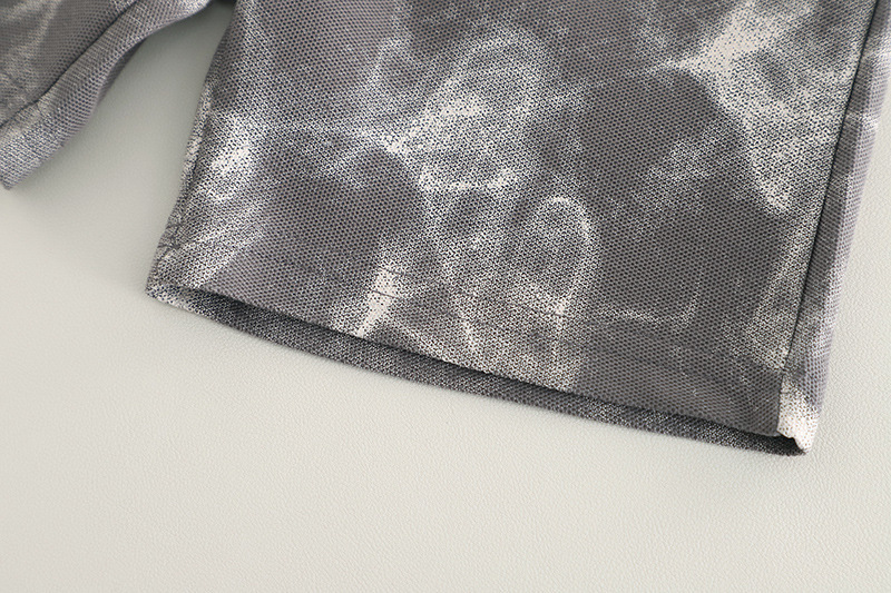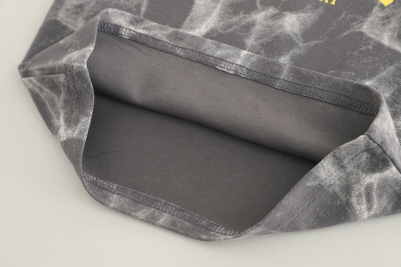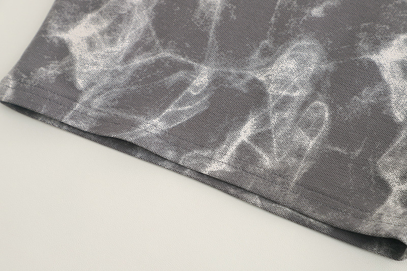 – Tricou din material de calitate superioară tip „piqué fin”. Model cu croială clasică, siluetă lejeră și efect batik modern în tonuri de gri și alb + imprimeu în partea din față.