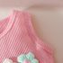 -Top fără mâneci în roz, confecționat din material moale cu textură gofrată – decorat cu tulpini brodate și floricele 3D în culori diferite, care creează efectul unei grădini adevărate
