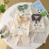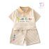 – Pantaloni scurți cu imprimeu, croială lejeră și talie elastică pentru libertate totală de mișcare în timpul jocului și aventurilor. Partea inferioară este în același stil în dungi și este decorată cu un imprimeu vertical cu dinozauri, creând o legătură vizuală cu bluza și adăugând un plus de veselie.