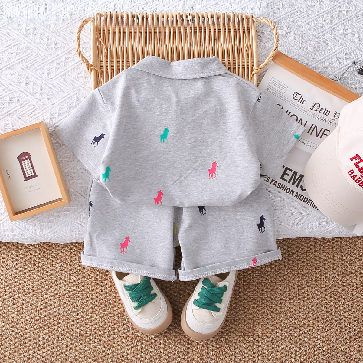Set de 2 piese cu guler clasic, broderii colorate și pantaloni scurți Polo Game Grey