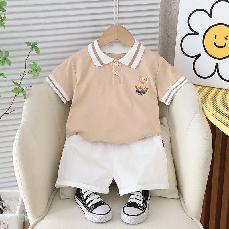 Set de 2 piese cu guler clasic și broderie Teddy Island