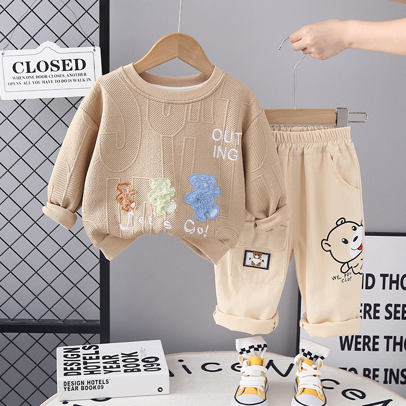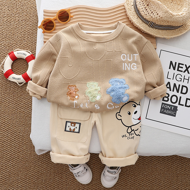Set de 2 piese cu hanorac cu model reliefat, broderie și pantaloni Let’s Go Bear