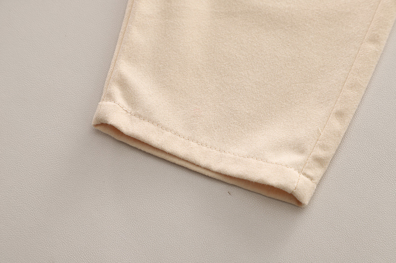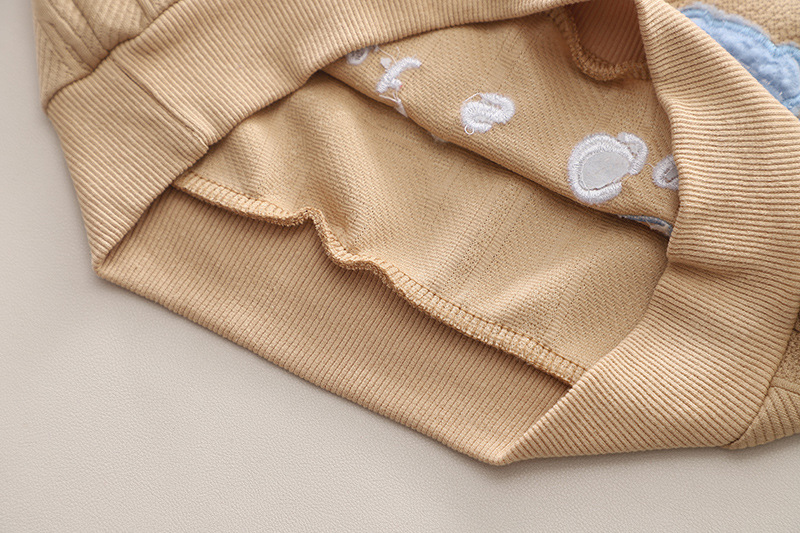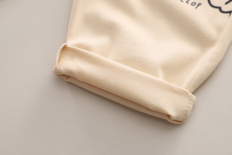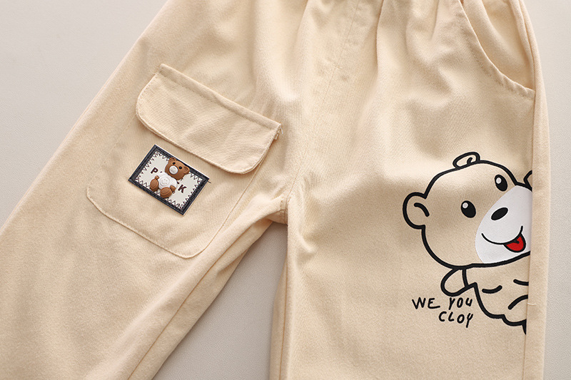 – Pantaloni în bej cald șampanie, din bumbac moale. Talie elastică pentru îmbrăcare ușoară, două buzunare laterale și manșete răsucite pentru libertate de mișcare. Imprimeu mare cu ursuleț zâmbitor în față și un buzunar decorativ cu mini ursuleț ca detaliu final adorabil.