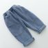 -Pantaloni din denim cu talie elastică, care permit o îmbrăcare ușoară și libertate de mișcare. Design cu cusături asimetrice de-a lungul pantalonilor pentru un aspect modern.