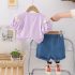 Set de 2 piese cu mânecă bufantă, dantelă și pantalon scurt din denim Summer Stroll Violet