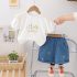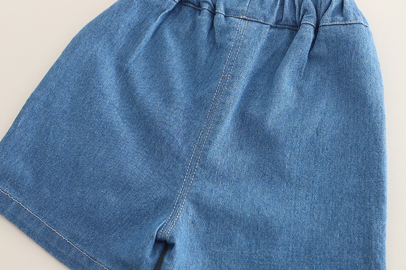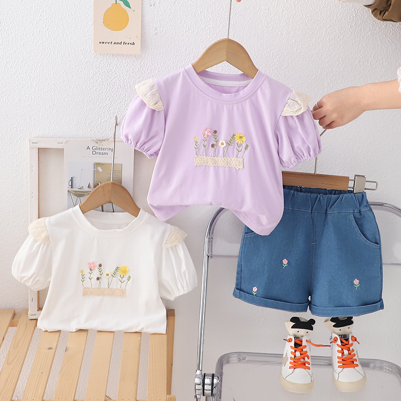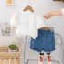 Set de 2 piese cu mânecă bufantă, dantelă și pantalon scurt din denim Summer Stroll