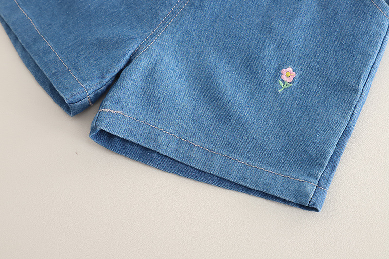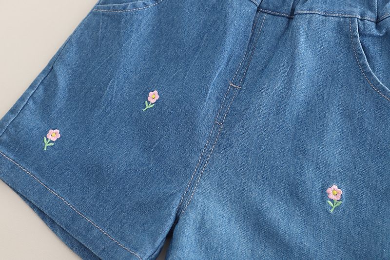 -Pantaloni scurți din denim, cu croială lejeră – talie elastică pentru îmbrăcare ușoară și tivuri rulate pentru un finisaj modern. Buzunare căptușite în față și floricele brodate ce adaugă note proaspete de primăvară.
