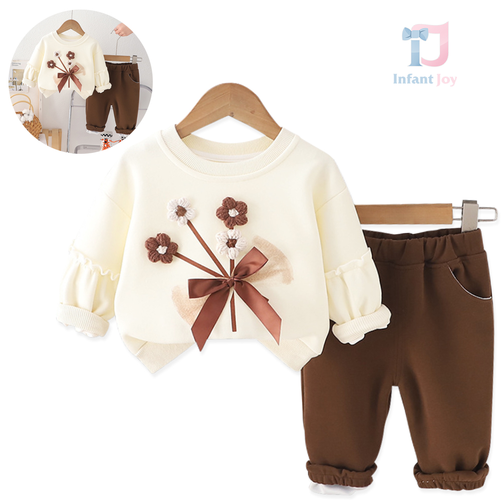 – Bluză din bumbac de înaltă calitate, ușor elastică, într-o nuanță crem. Model cu mâneci evidențiate prin volănașe, flori 3D tricotate și o fundiță satinate pentru un aspect elegant + manșete elastice care oferă confort.
