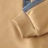 – Bluziță tip hanorac cu guler clasic, confecționată din material moale și plăcut la atingere. Modelul are nasturi în față și un buzunar frontal cu cusătură decorativă, nasture și inscripție care adaugă un accent stilat. Este completat cu elemente din denim la guler și la mâneci.