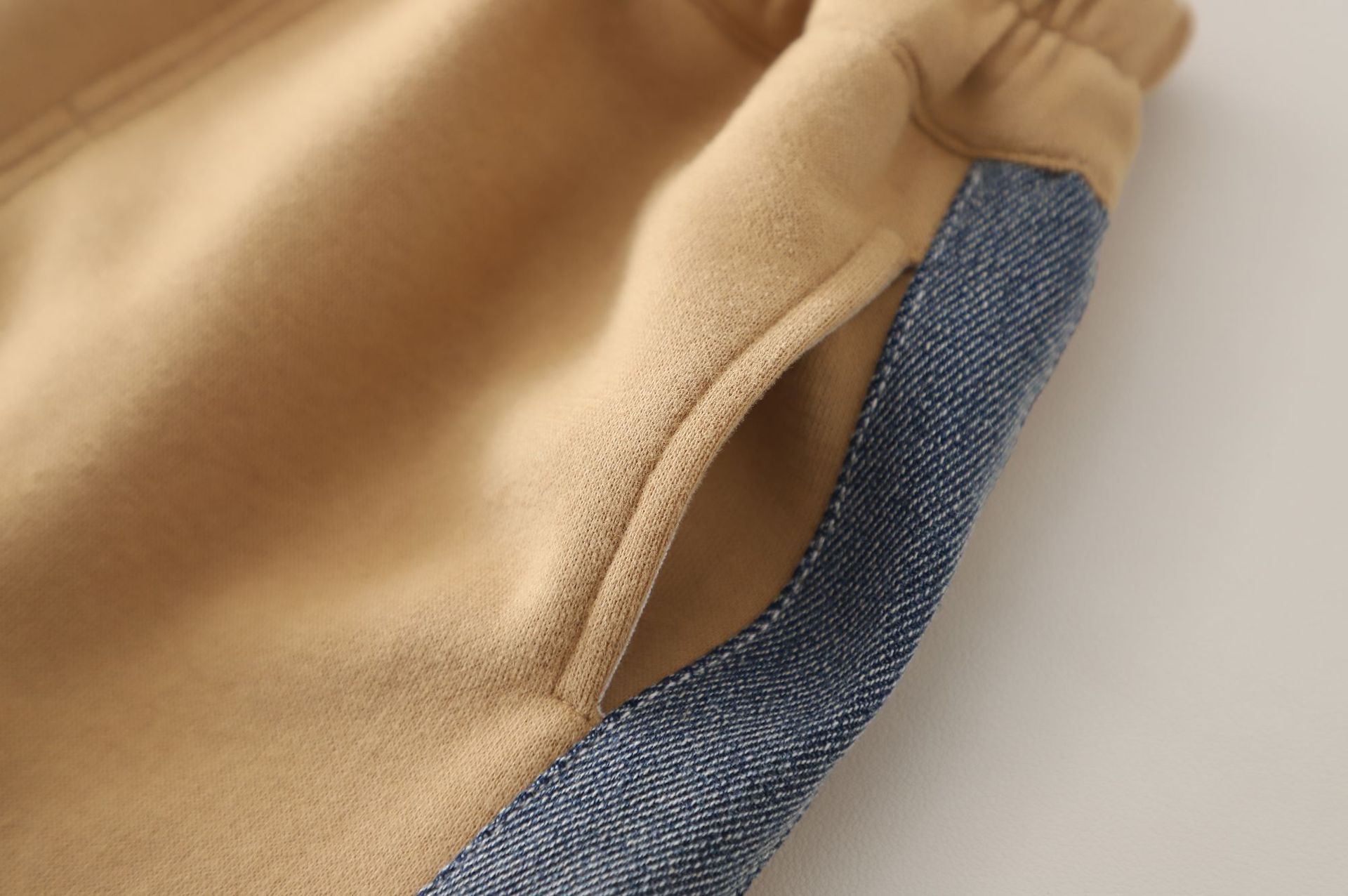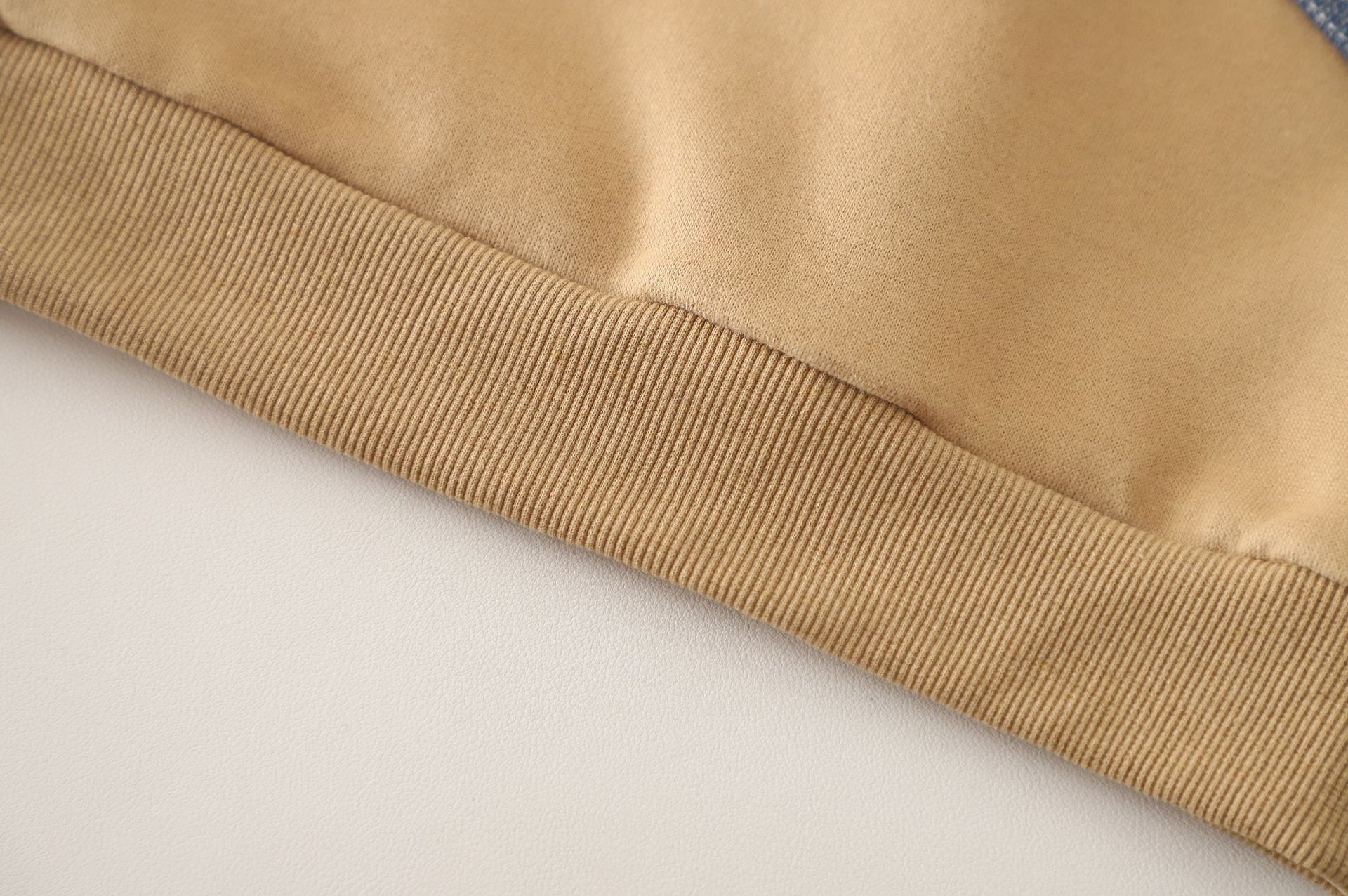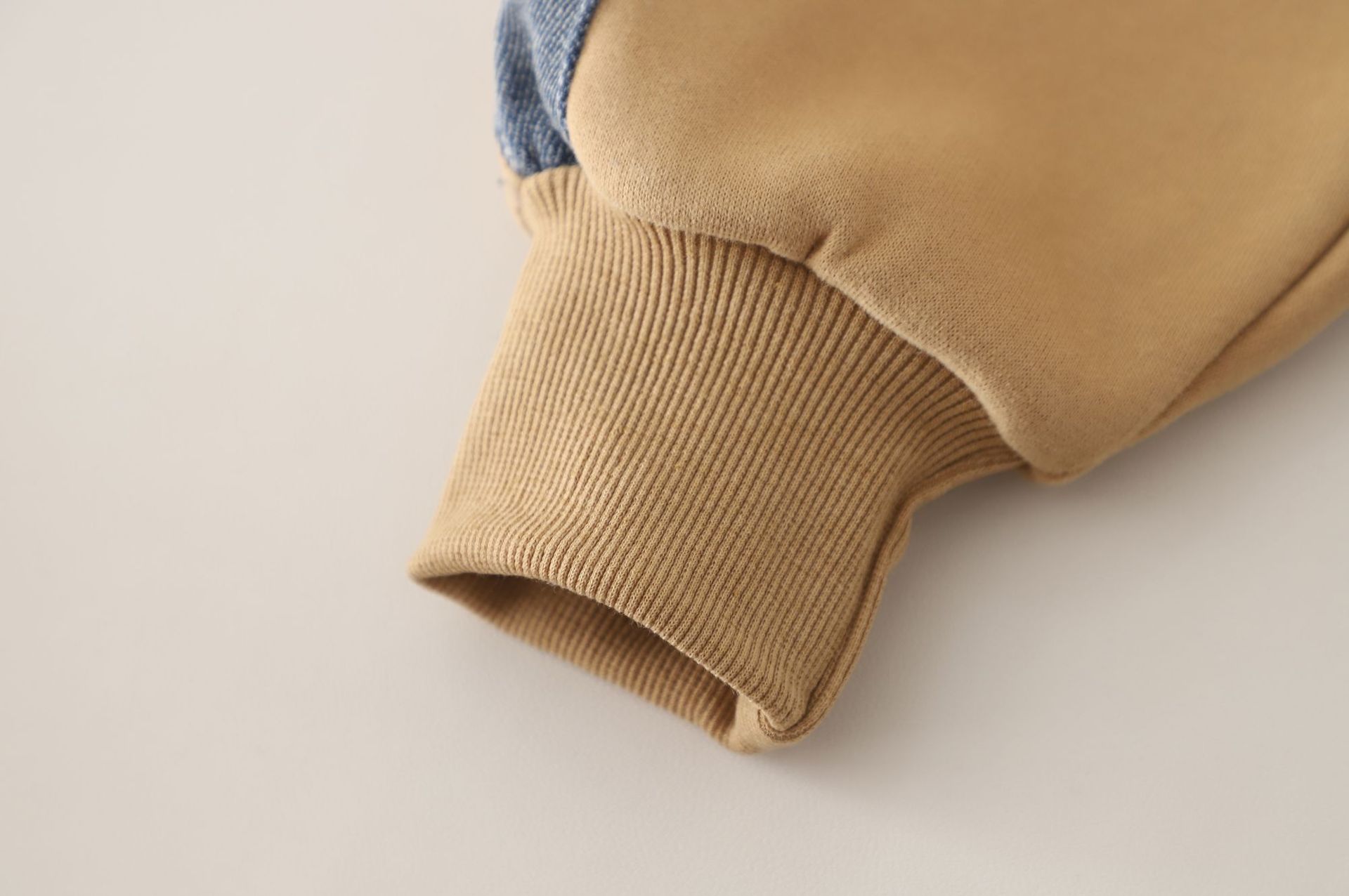 🍬 Set din 2 piese pentru băiat, în culoare caramel, cu accente din denim – confortabil și practic pentru purtarea zilnică.