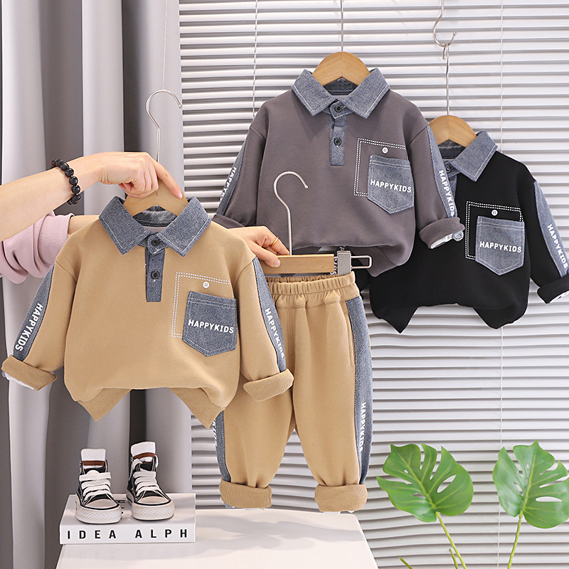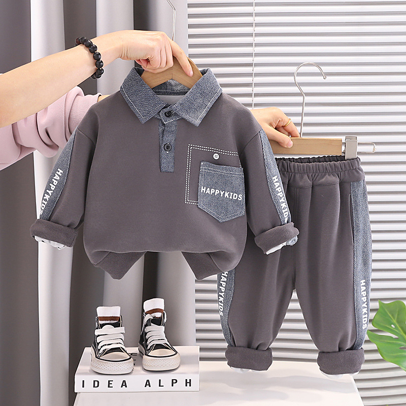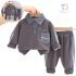 🩶 Set din 2 piese pentru băiat, de culoare gri, cu accente din denim – confortabil și practic pentru utilizarea de zi cu zi.