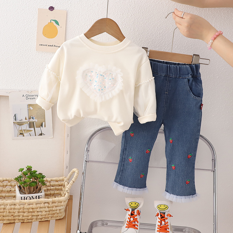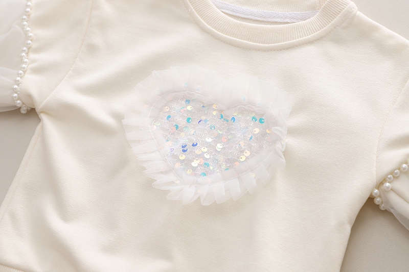 Set de 2 piese cu paiete si broderie Shiny Heart Beige