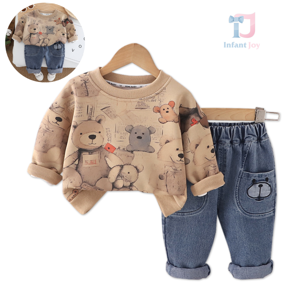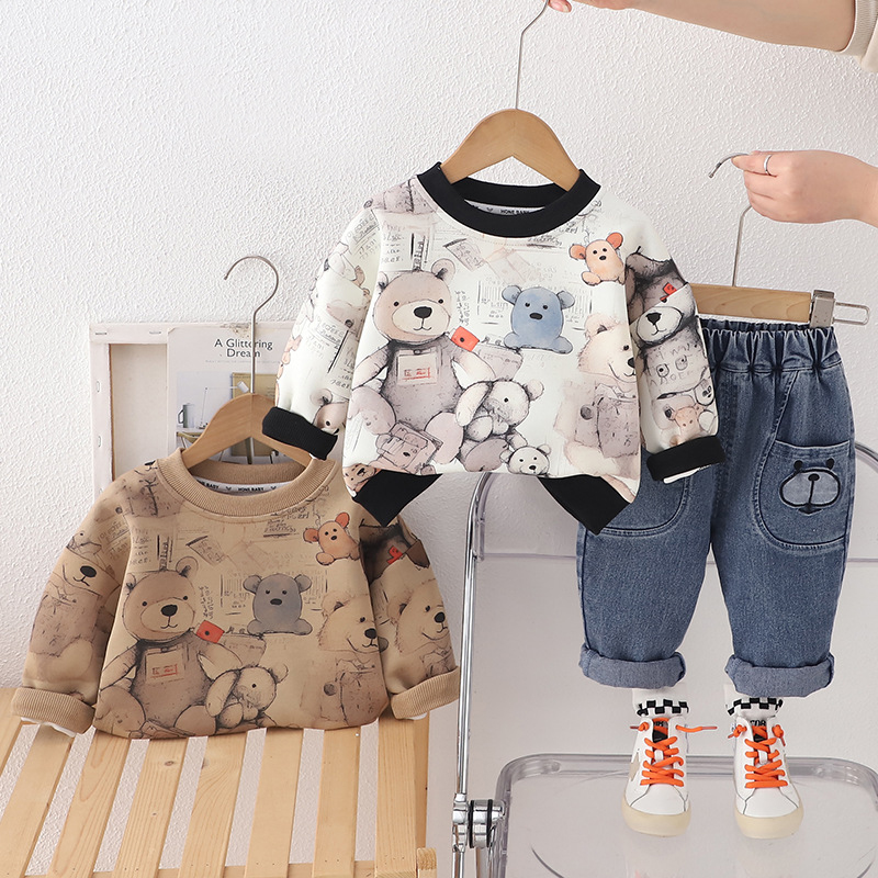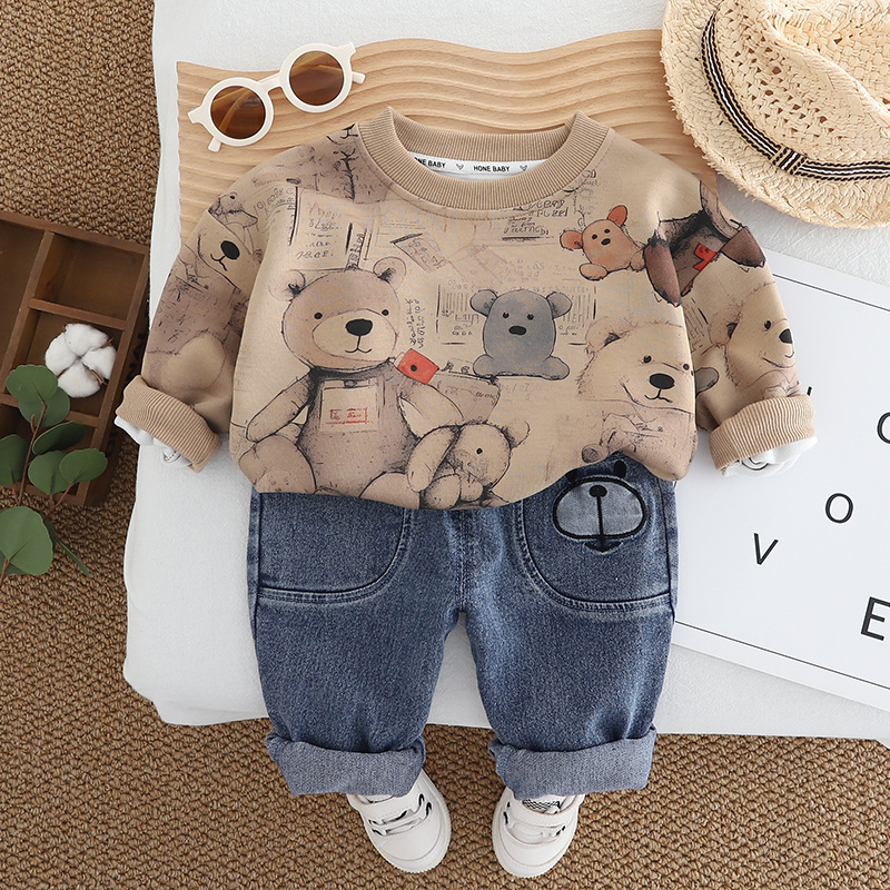 Set de 2 piese cu pantaloni din denim și bluză cu multiple ursuleți Bear Buddy