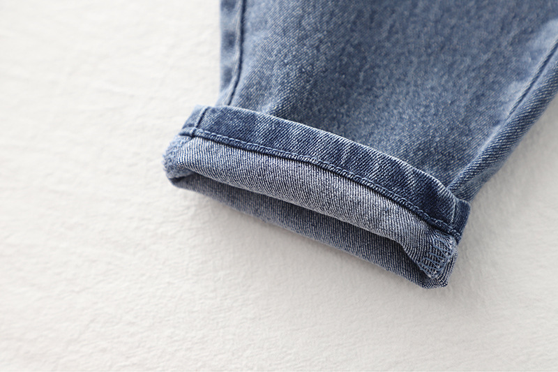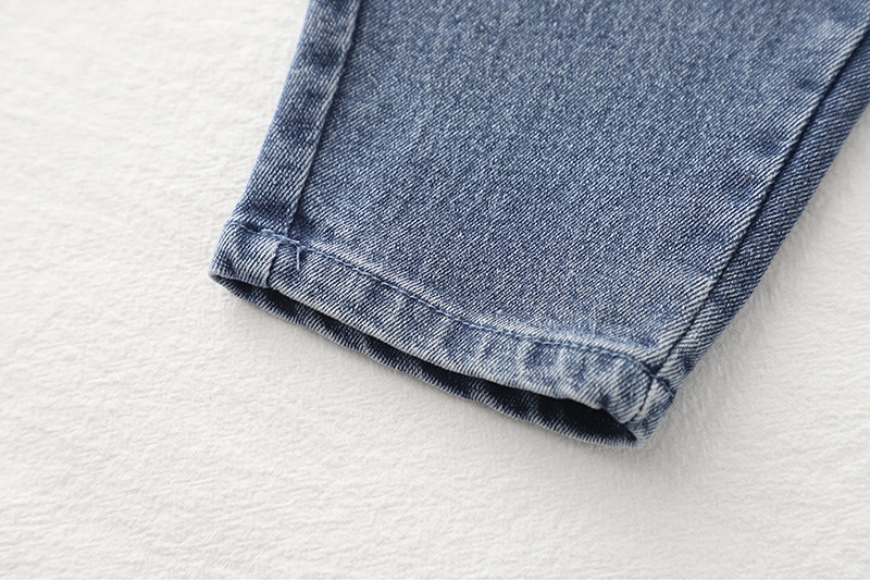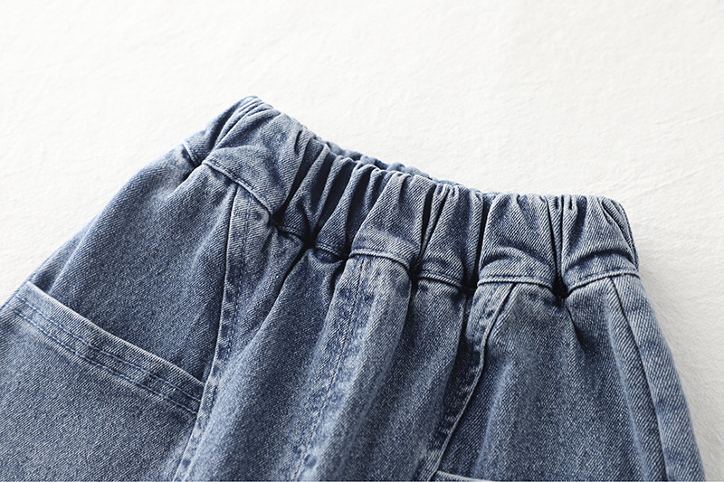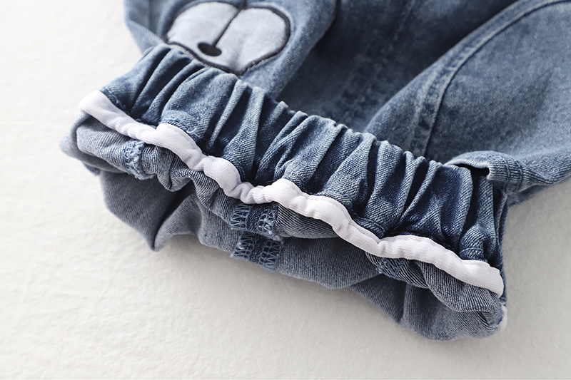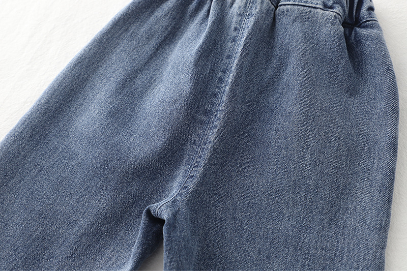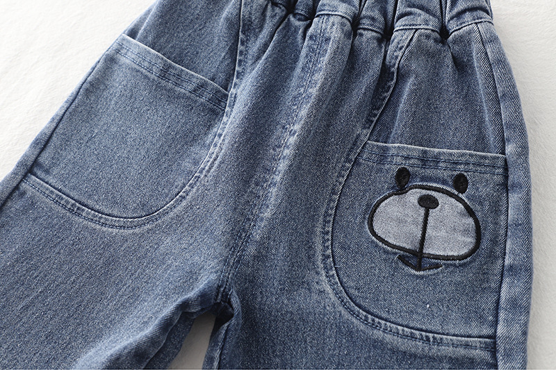 -Pantaloni din denim, cu talie elastică pentru o îmbrăcare ușoară și confort maxim. Buzunarele mari din față, decorate cu broderii, adaugă un aspect modern și practic.