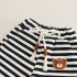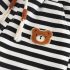-Pantaloni din bumbac, cu dungi orizontale moderne, talie elastică cu șnururi decorative, două buzunare și o emblemă aplicată cu ursuleț pe o parte.