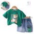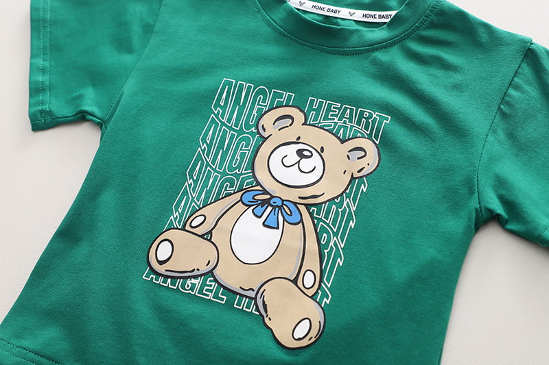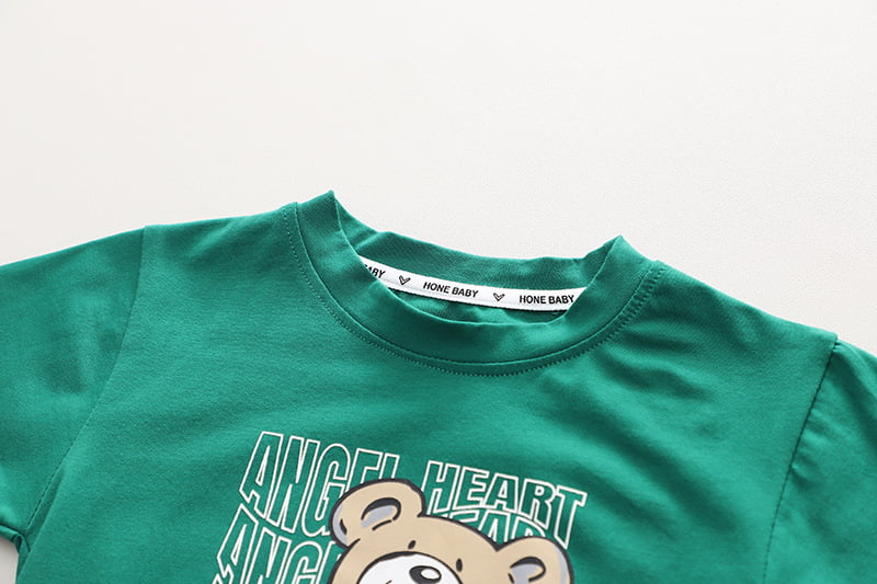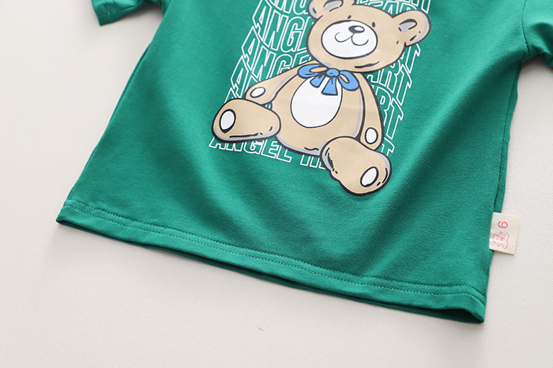 -Tricou verde cu mânecă scurtă, din bumbac moale și elastic, cu imprimeu de efect în partea din față.