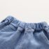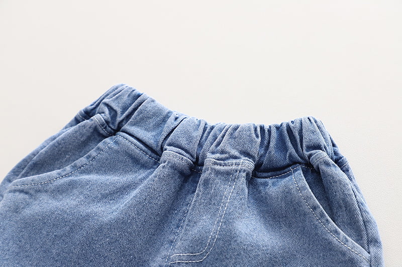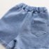 -Pantaloni scurți din denim de înaltă calitate, cu talie elastică, două buzunare frontale și unul la spate + aplicație accentuată pe un crac.
