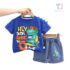 Set de 2 piese cu pantaloni scurți din denim și elemente 3D Dino Skater