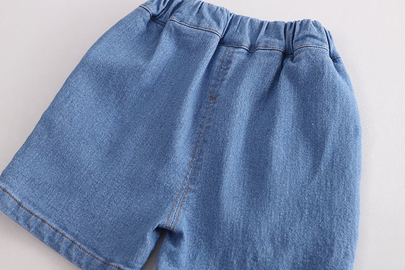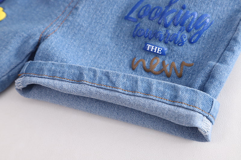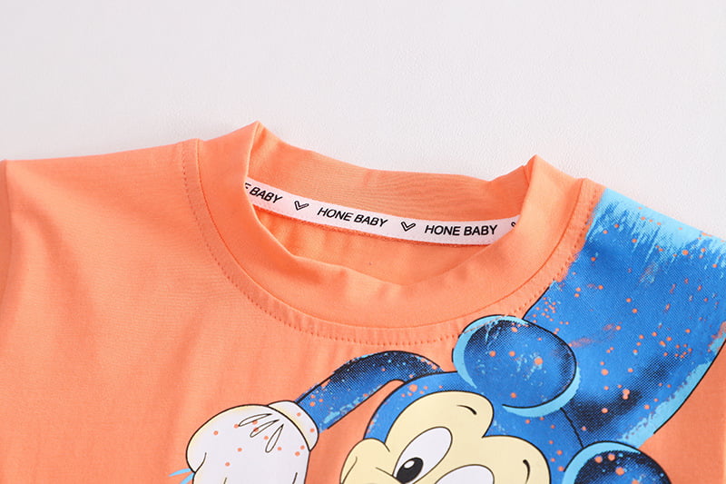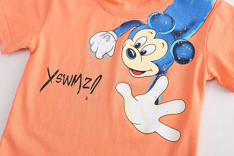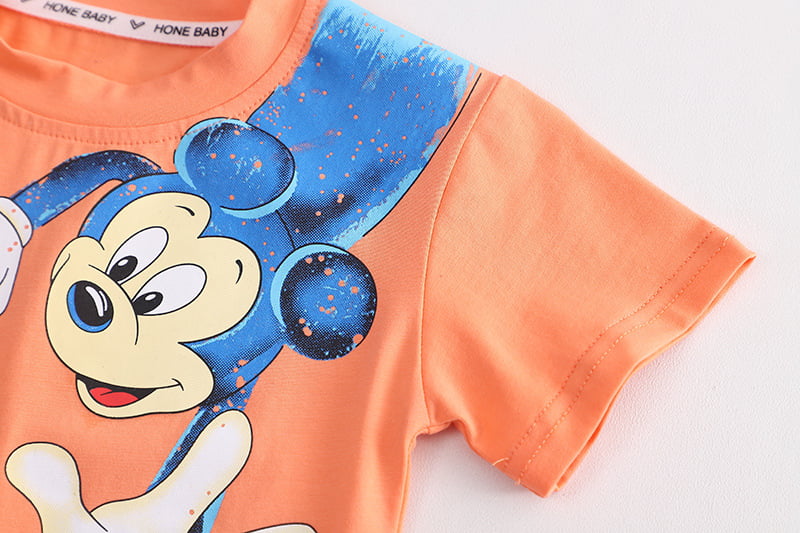 Set de 2 piese cu pantaloni scurți din denim și imprimeuri spectaculoase Mickey Wait Orange