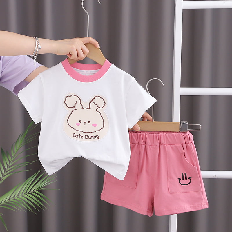 Set de 2 piese cu pantaloni scurți Pink Cute Bunny