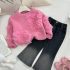 – Pulover într-o nuanță delicată de roz, confecționat dintr-un tricot moale și călduros, decorat cu inimioare 3D volumetrice din tulle, care oferă un aspect expresiv și aerat. Elementele decorative sunt amplasate cu precizie pe mâneci și în partea din față, creând un efect artistic și jucăuș. Manșetele și gulerul sunt realizate din tricot elastic, tip rips, pentru confort optim.