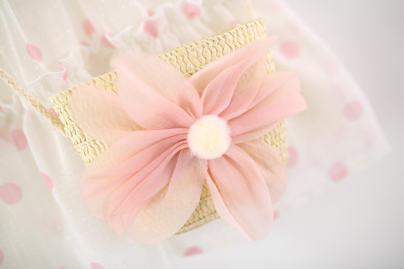 – Poșetuță tip crossbody în nuanță naturală, decorată cu o mare floare roz din tul.