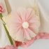– Poșetuță adorabilă, ideală pentru comori și jucării în miniatură. Stil natural, cu o fundiță-floricică 3D din tul roz în față + baretă lungă tip șnur.