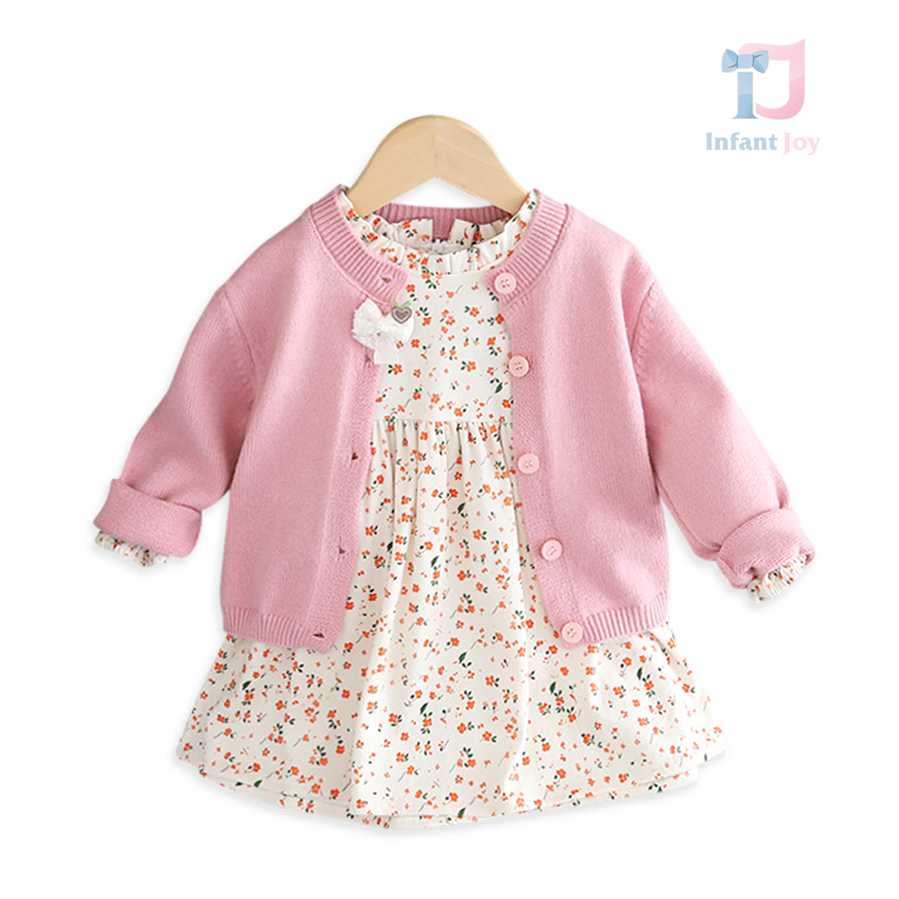 Set de 2 piese cu rochie cu mânecă lungă și vestă tricotată Spring Hug
