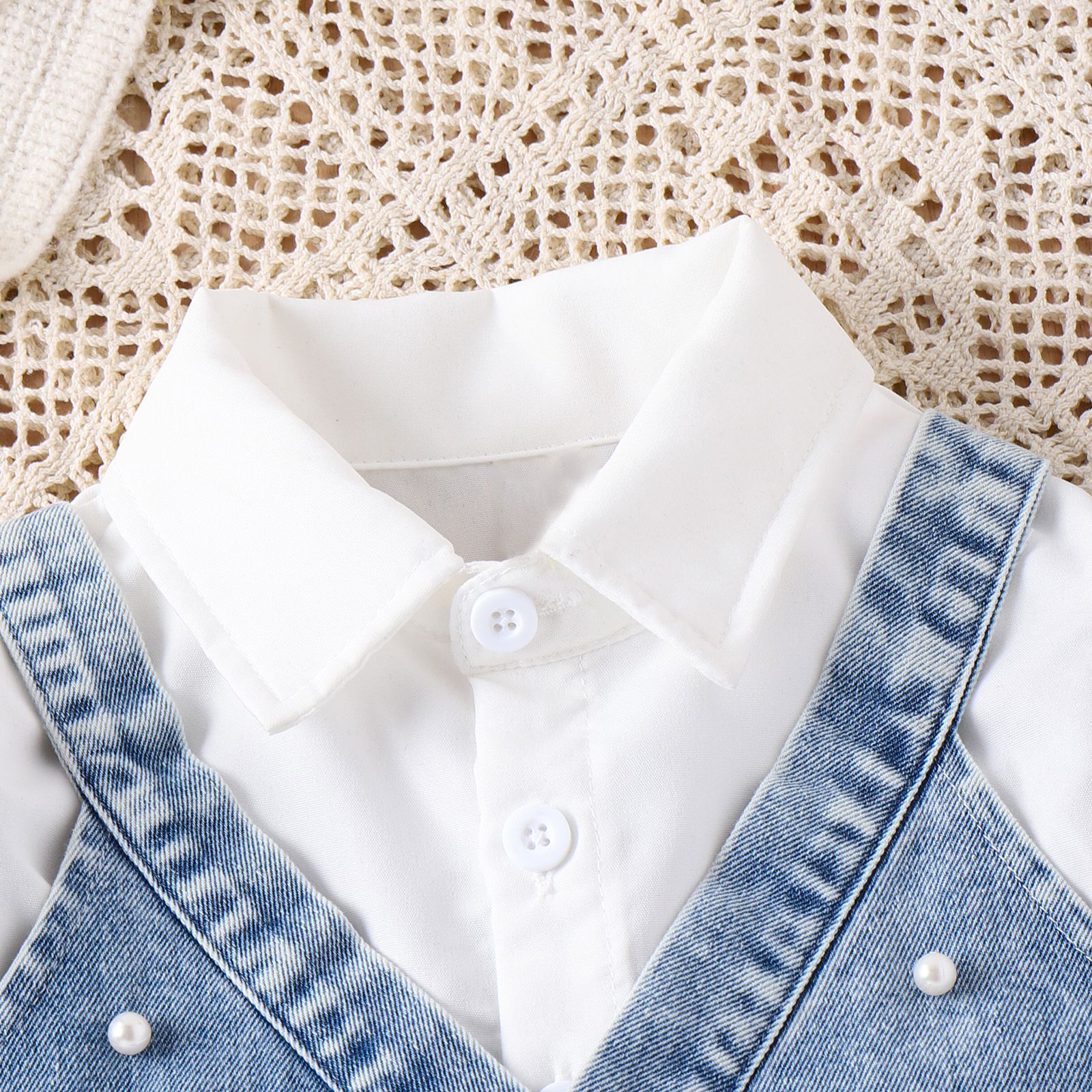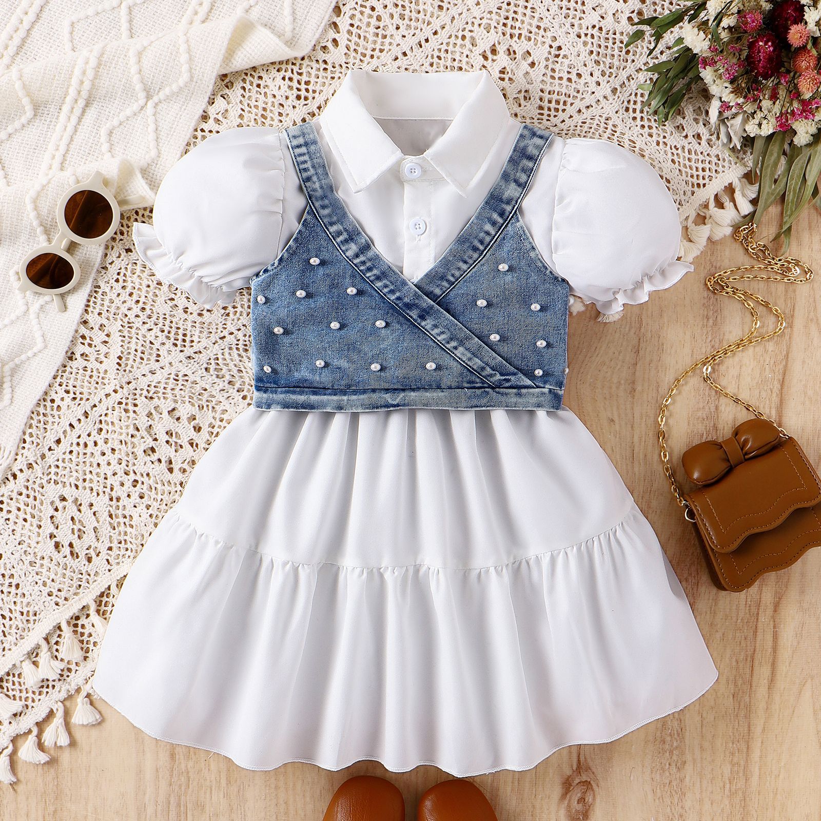 Set de 2 piese cu rochie cu top din denim si perle Shiny Pearl