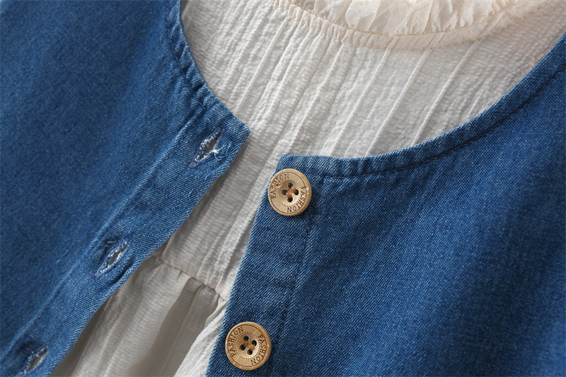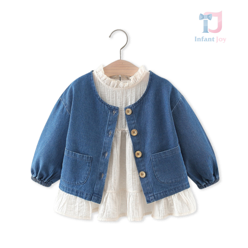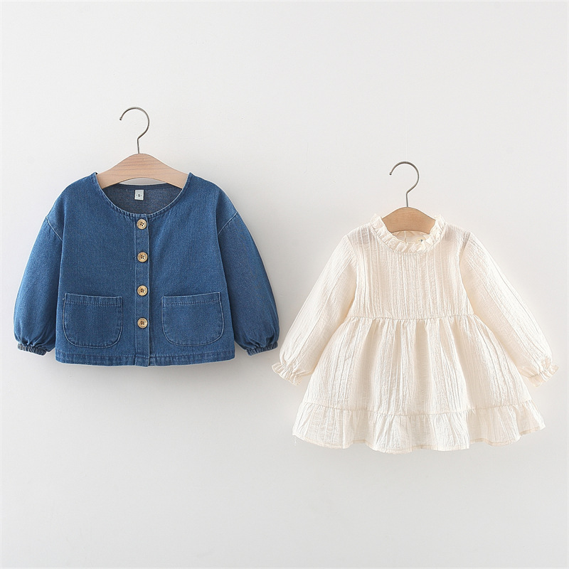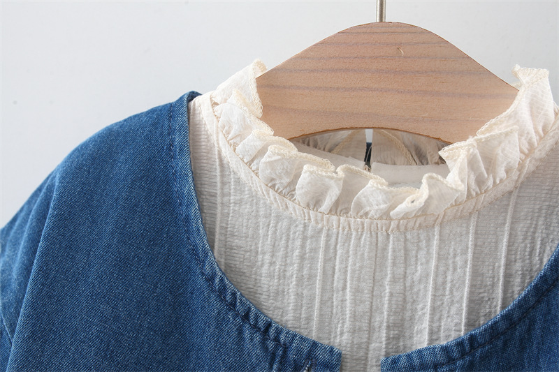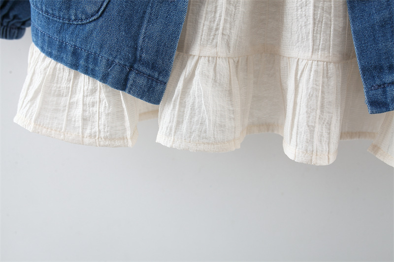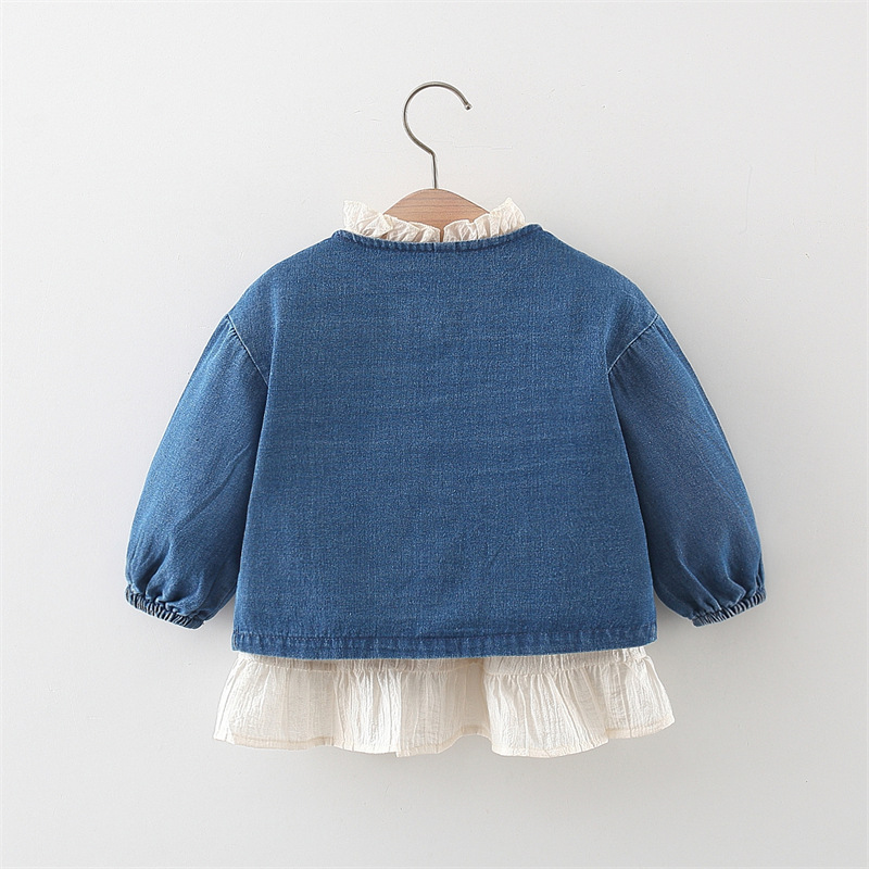 Set de 2 piese cu rochie eterica cu bucle + camasa din denim Mini Retro