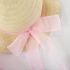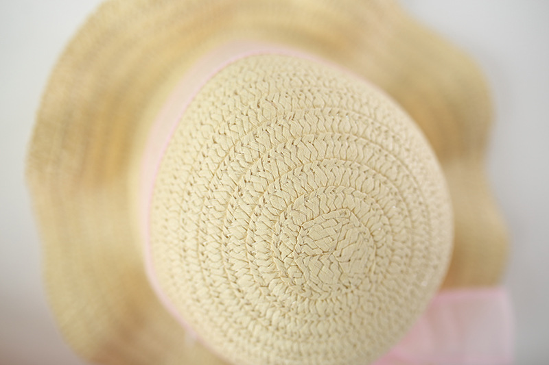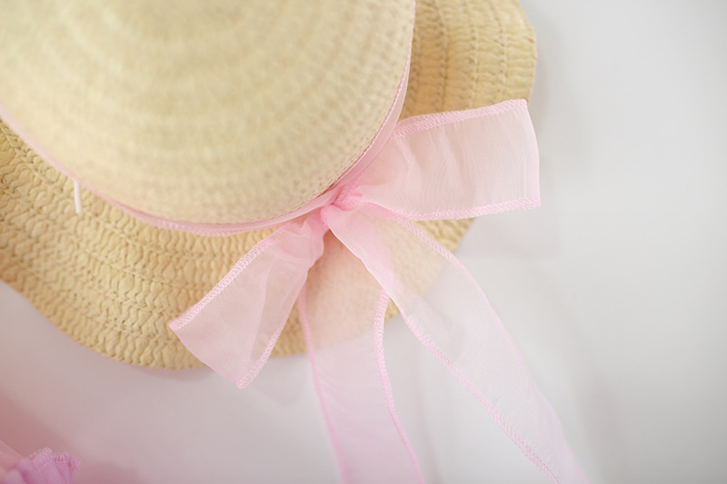 -Pălărie cu boruri largi pentru protecție solară, decorată cu o fundă mare din organza, care completează ținuta.