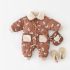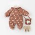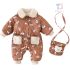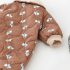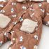 – Combinezon confecționat din material impermeabil (tip șușt), de înaltă calitate, în nuanță maro cald, cu imprimeu vesel cu ursuleți. Căptușit cu material plușat pentru confort și protecție în zilele reci. Designul este completat de guler pufos și două buzunare frontale mari din blăniță eco pentru un plus de căldură și stil. Se închide cu capse în față și între piciorușele pentru îmbrăcare ușoară. Model cu manșete elastice la mâneci și pantaloni pentru reținerea căldurii.