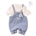 Set de 2 piese cu salopetă din denim cu element 3D și bluză din bumbac Welcome Bunny