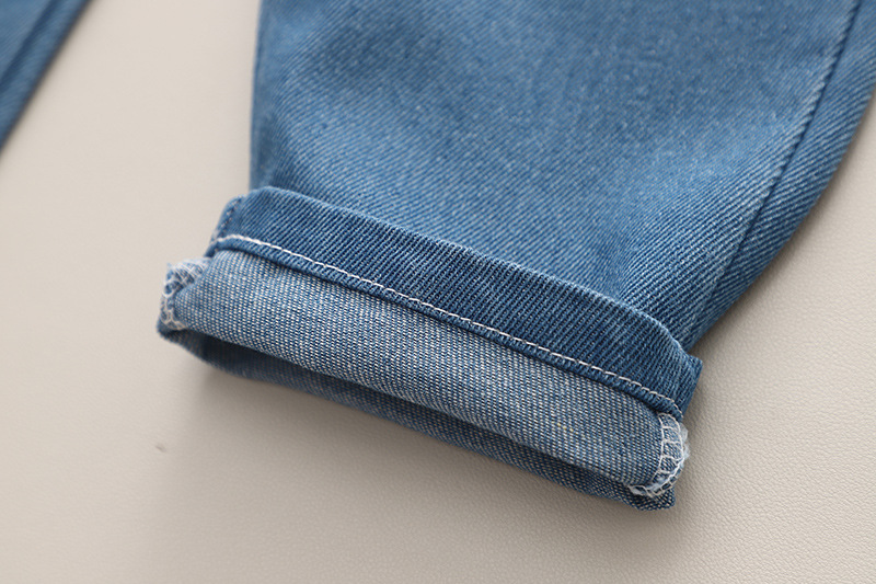 -Salopetă din denim moale de culoare albastră. Model cu bretele reglabile prin nasturi, un buzunar mare în partea din față decorat cu flori 3D, ca accent al modelului.