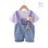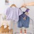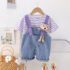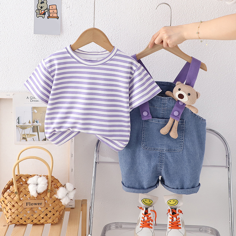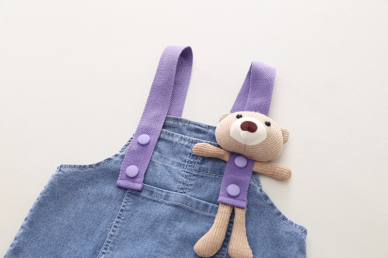 Set de 2 piese cu salopetă din denim și element 3D Bear Lilac