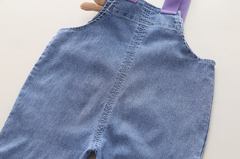 – Salopetă din denim moale, cu bretele reglabile. Design cu buzunar frontal tip „cangur” și ursuleț plușat cusut, ca accent – pentru un look unic.