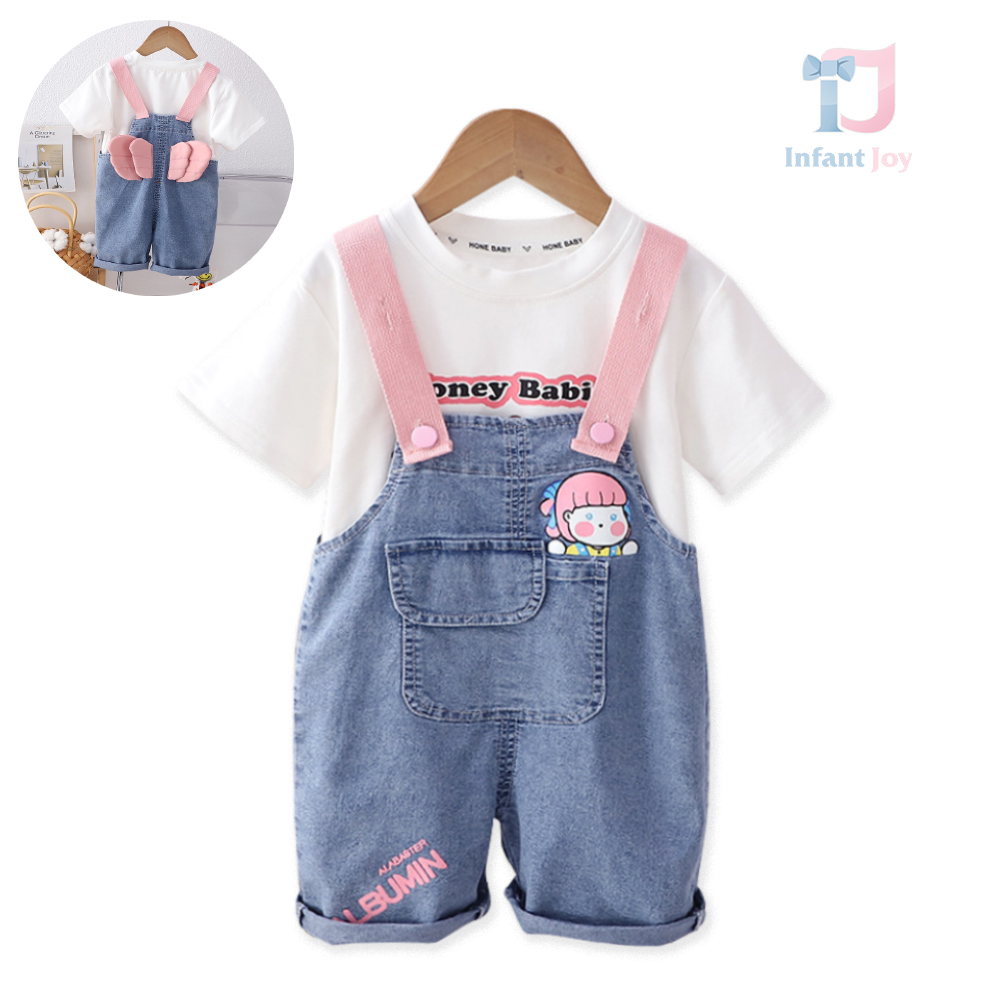 Set de 2 piese cu salopetă din denim și elemente de culoare Honey Babies White