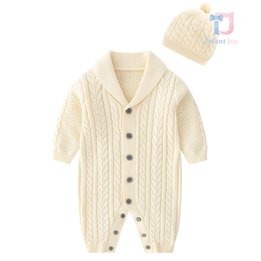 Set de 2 piese cu salopetă și pălărie tricotate Sit by The Fireplace Beige