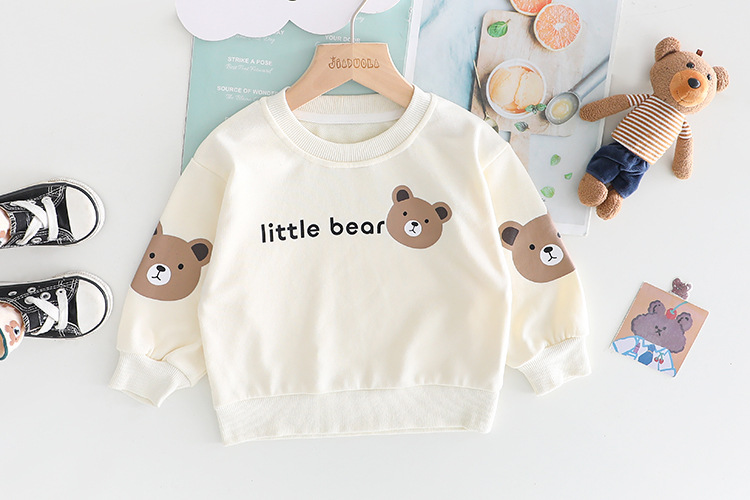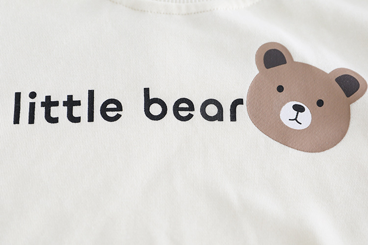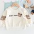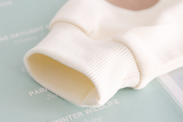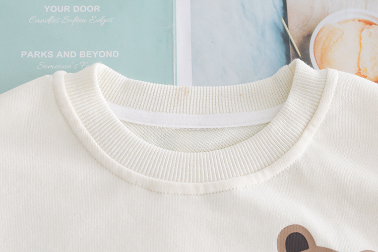 – Bluză/Hanorac din material de bumbac de înaltă calitate, de culoare crem. Model cu elastic la talie și mâneci pentru confort în mișcare, cu imprimeuri adăugate pe coate și în partea din față, asortându-se perfect cu salopeta.