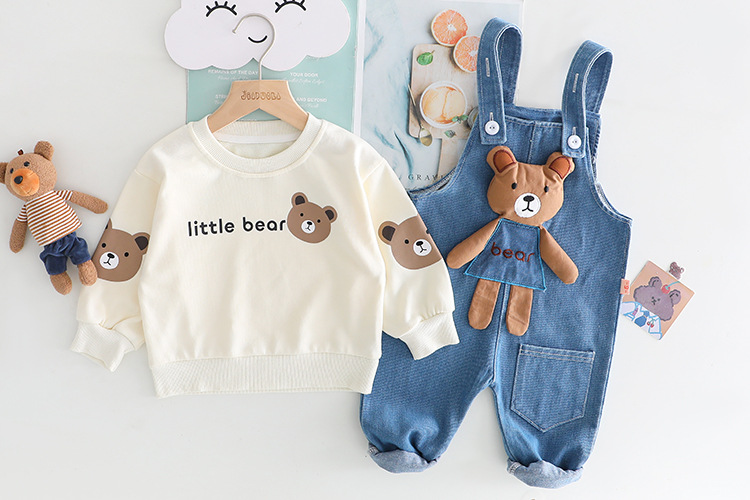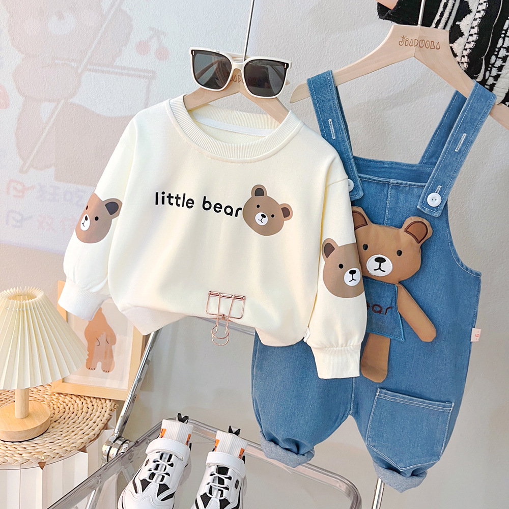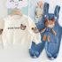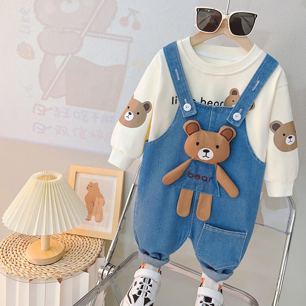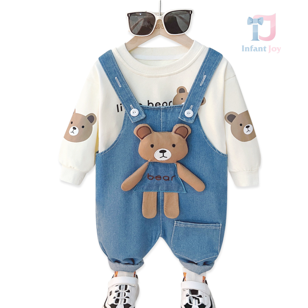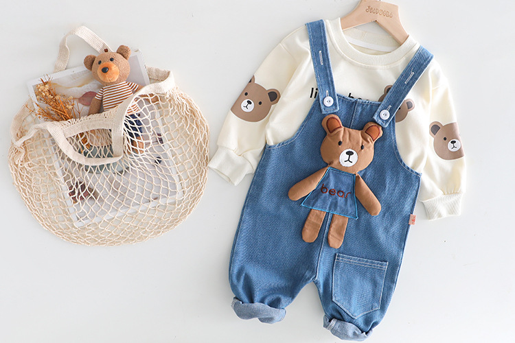 Set de 2 piese cu salopete din denim și aplicații 3D Little Bear