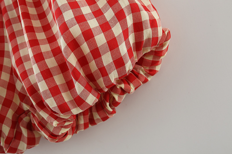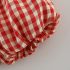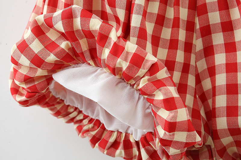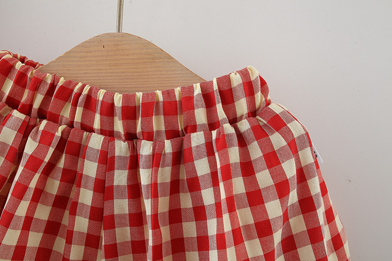 -Pantaloni scurți cu talie elastică și cracii adunați cu elastic – creează o siluetă tip „bloomers”. Țesătura este ușoară și respirabilă, cu un model clasic în carouri roșu-alb, cu un aer ușor vintage. Oferă libertate de mișcare și confort pe tot parcursul zilei.