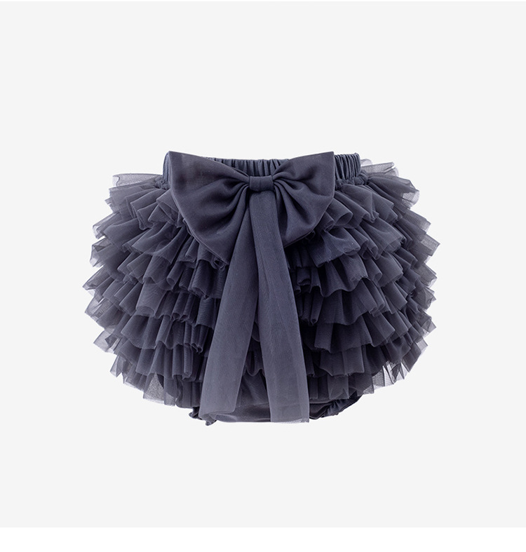 -Fustă cu chiloței cu straturi de tul tip „tutu“, având cusută în față o fundă mare și elegantă, care adaugă un plus de farmec și o notă subtilă de eleganță.